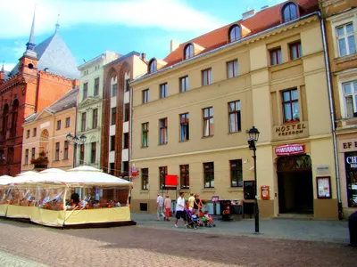 Hostel Freedom, położony w samym sercu toruńskiej starówki przy Rynku Staromiejskim 10, to popularny wybór dla podróżnych szukających noclegu w historycznym centrum Torunia. Z oceną 4,6 na 5 w Google na podstawie 483 opinii, obiekt cieszy się uznaniem gości, którzy chwalą przede wszystkim wyjątkową lokalizację – wszystko, od zabytków po sklepy i komunikację miejską, jest dosłownie na wyciągnięcie ręki. To idealna baza wypadowa do zwiedzania miasta, z widokiem na tętniący życiem rynek. Goście podkreślają profesjonalną i życzliwą obsługę recepcji, która często pomaga w drobnych sprawach, jak przydzielenie pokoju czy wskazówki turystyczne. Pokoje są czyste, z wygodnymi łóżkami i pachnącą pościelą, a wspólne łazienki oraz kuchnie na piętrach – dobrze wyposażone, z dostępem do kawy, herbaty i podstawowych utensyliów – utrzymane w schludnym stanie. Cena za nocleg uznawana jest za adekwatną do oferowanego standardu, szczególnie biorąc pod uwagę centralne położenie. Chociaż jako starszy budynek hostel ma typowe cechy, takie jak brak windy na drugie piętro czy okazjonalny hałas z ulicy, liczne recenzje wskazują na spokojną atmosferę i czystość jako główne atuty. Hostel Freedom sprawdza się zarówno na krótki wypad, jak i dłuższy pobyt, przyciągając rodziny, grupy znajomych i indywidualnych turystów. (198 słów)